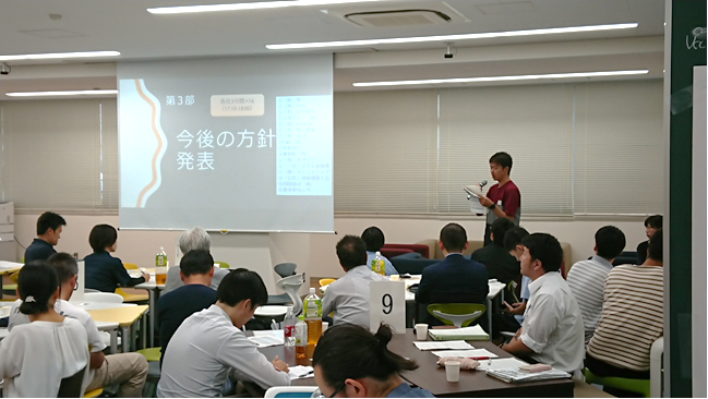 これまでの取り組みの振り返り、本報告会を通して感じたこと、気づいたこと、ワークショップの協議結果を踏まえ、今後のプロジェクトの進め方や課題解決に向けどう取り組んでいくのか、PJチームごとに3分間の発表を行いました。