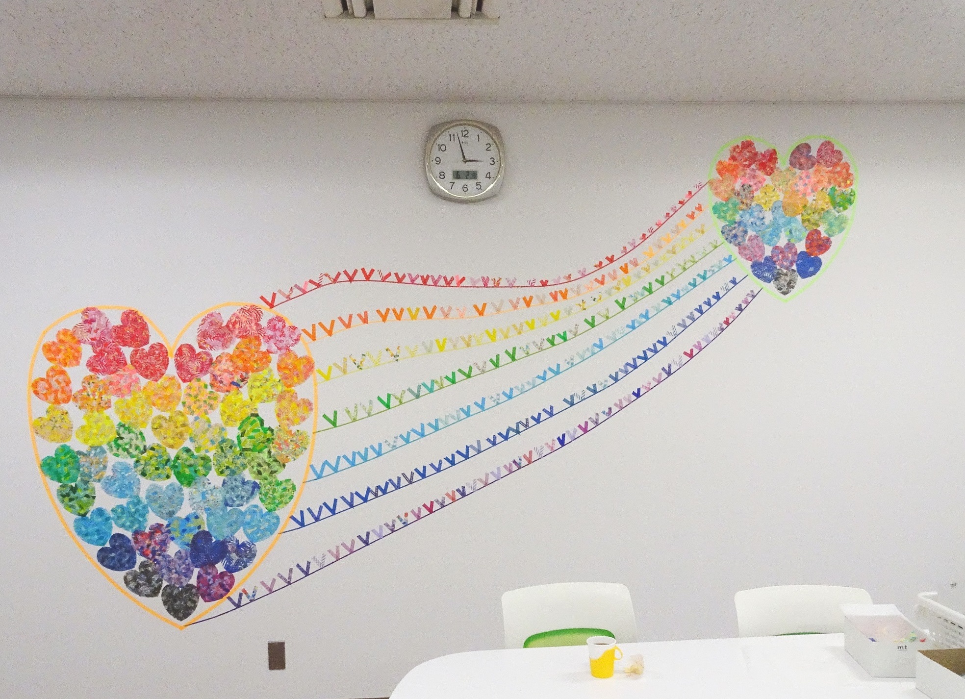 徳島県医療的ケア児等支援センターにマスキングテープでハートを制作しました(Tokudai Hospital Art Labo)
