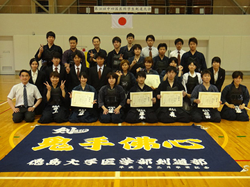 学部内だけのサークルや部が多い中、私たち剣道部は数少ない医歯薬合同の部活で、学部を超えた幅広い交流をすることができます。他大学との交流も多く、中四国大会やオールデンタルのみならず関西の医療系の大会にも出場しレセプションなどを通じて親密な交流ができます。秋と春には5~10校での合同合宿もあり、ここでの友人、先輩、後輩は一生ものです。