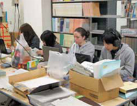 言葉の採取に、今ではデジタル録音機が活躍します。岸江先生の研究室では、学生たちがパソコンを使って音声の分析に取り組んでいます。