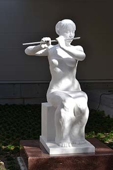 『水の調べ』は、本学学芸学部を卒業された鎌田先生が「水環境と彫刻」を題材に制作された作品であり、寄贈いただいた彫刻『水の調べ』は、交流の場である「けやきホール」において学生、教職員、そして地域住民の方々に親しんでいただけるシンボル的な存在となりました。