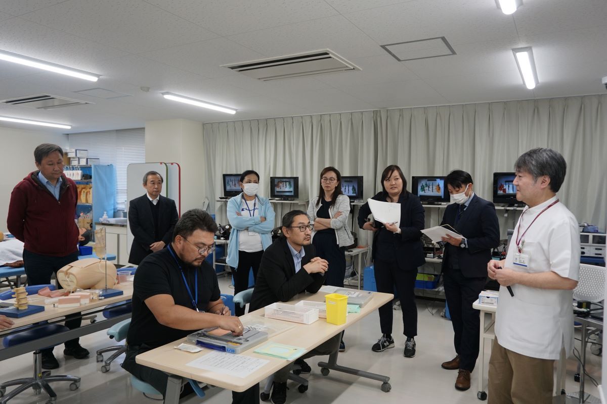 2024(令和6)年11月17日~11月30日の14日間、モンゴル国立医科大学・日本モンゴル病院の医師ら8人が徳島大学で日本の大学病院の医師の研修管理体制について研修を受けました。具体的には、日本における医師の教育研修制度、大学病院と関連病院の連携体制(研修・医局人事)及び徳島大学医学部における卒前医学教育、卒前・卒後のシームレスな連携など幅広い日本での医師の研修管理体制の研修を受けました。