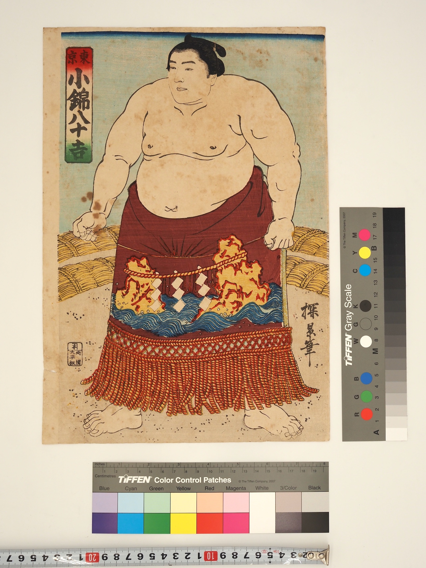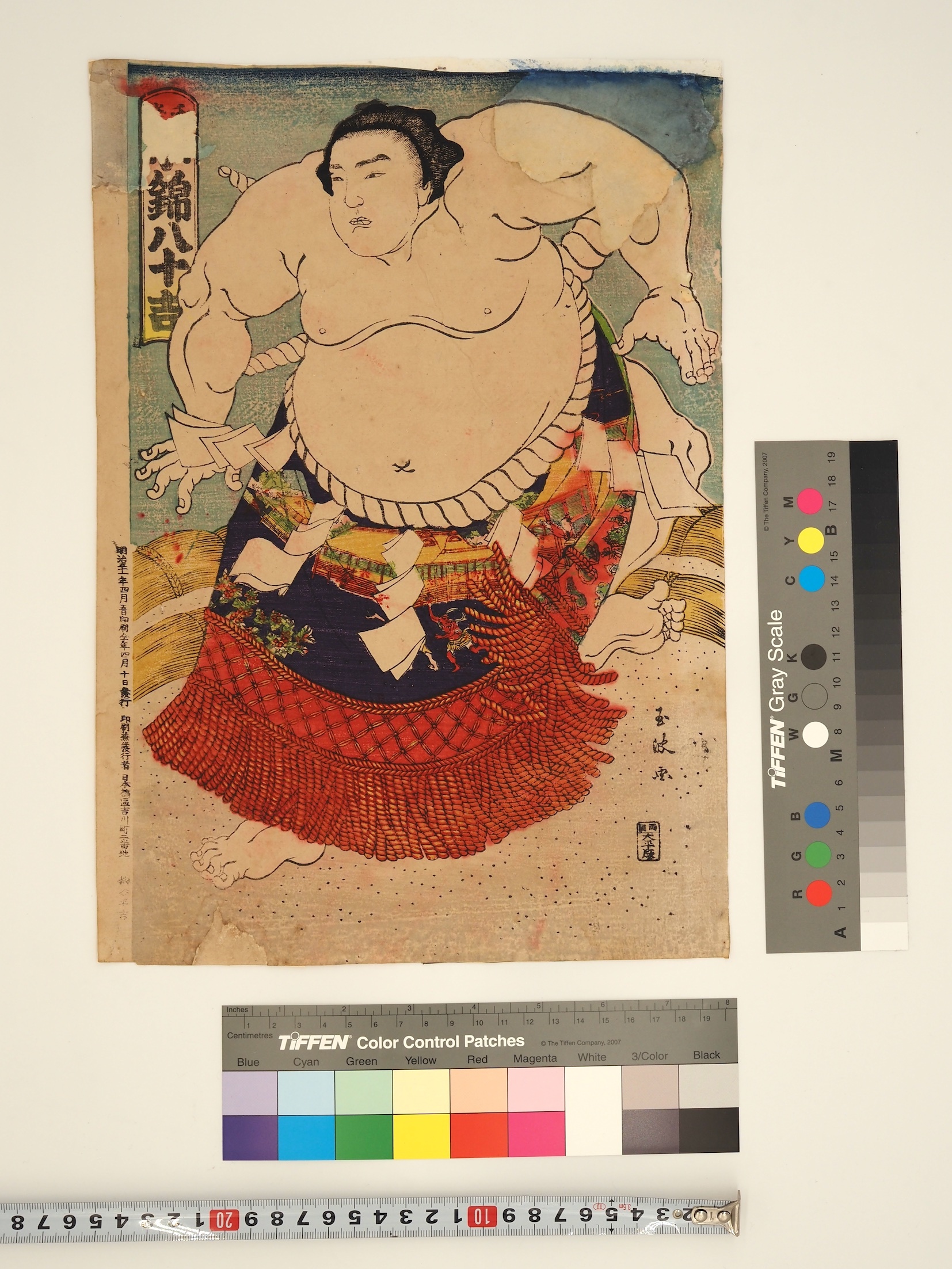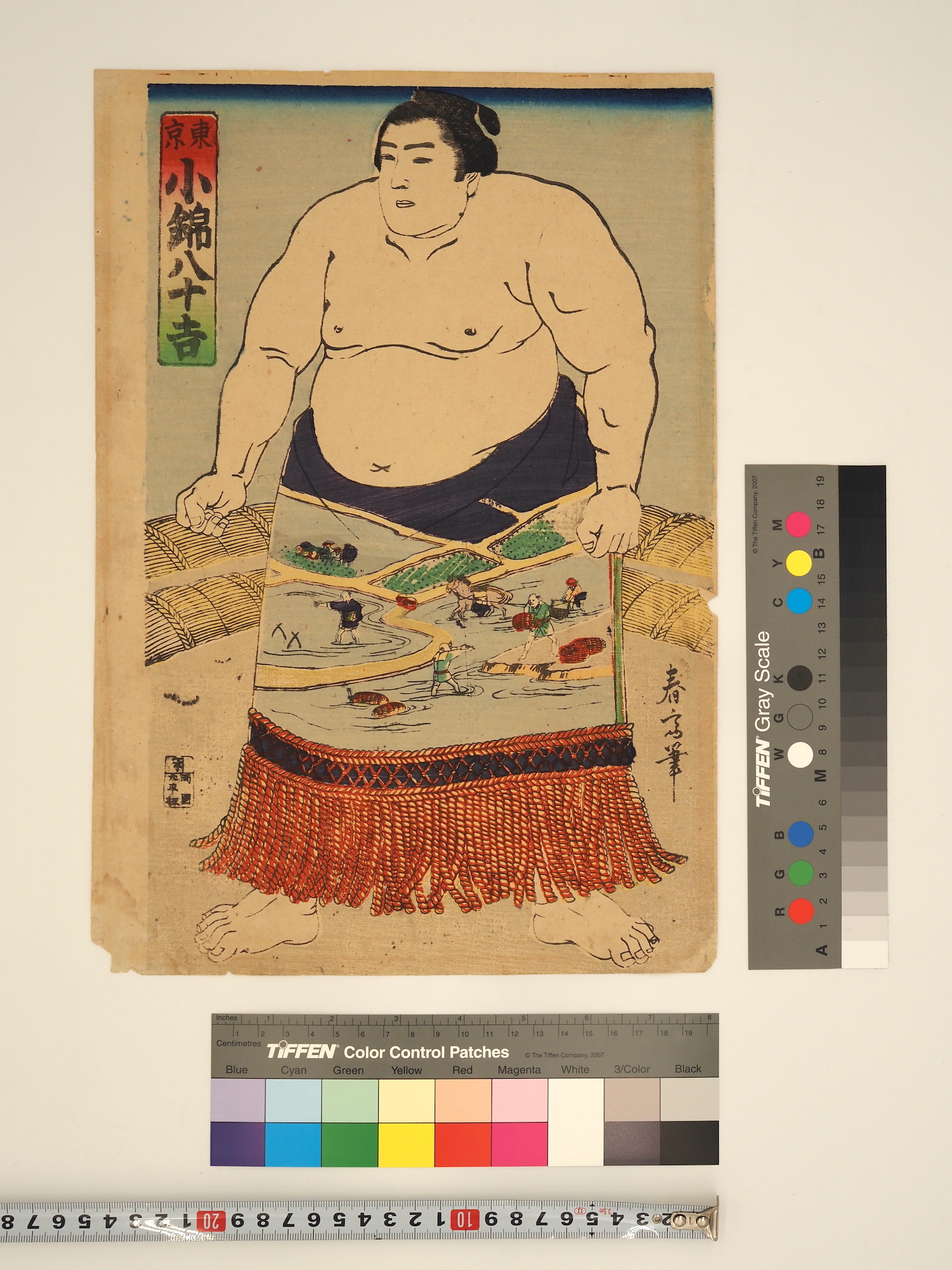 タイトル「延遼館天覧横綱之図(梅ヶ谷藤太郎天覧土俵入)」 タイトル「延遼館天覧横綱之図(梅ヶ谷藤太郎天覧土俵入)」 P10-3B/尾形 月耕/延遼館天覧横綱之図(梅ヶ谷藤太郎天覧土俵入)/横山良八/明治17年/A/O