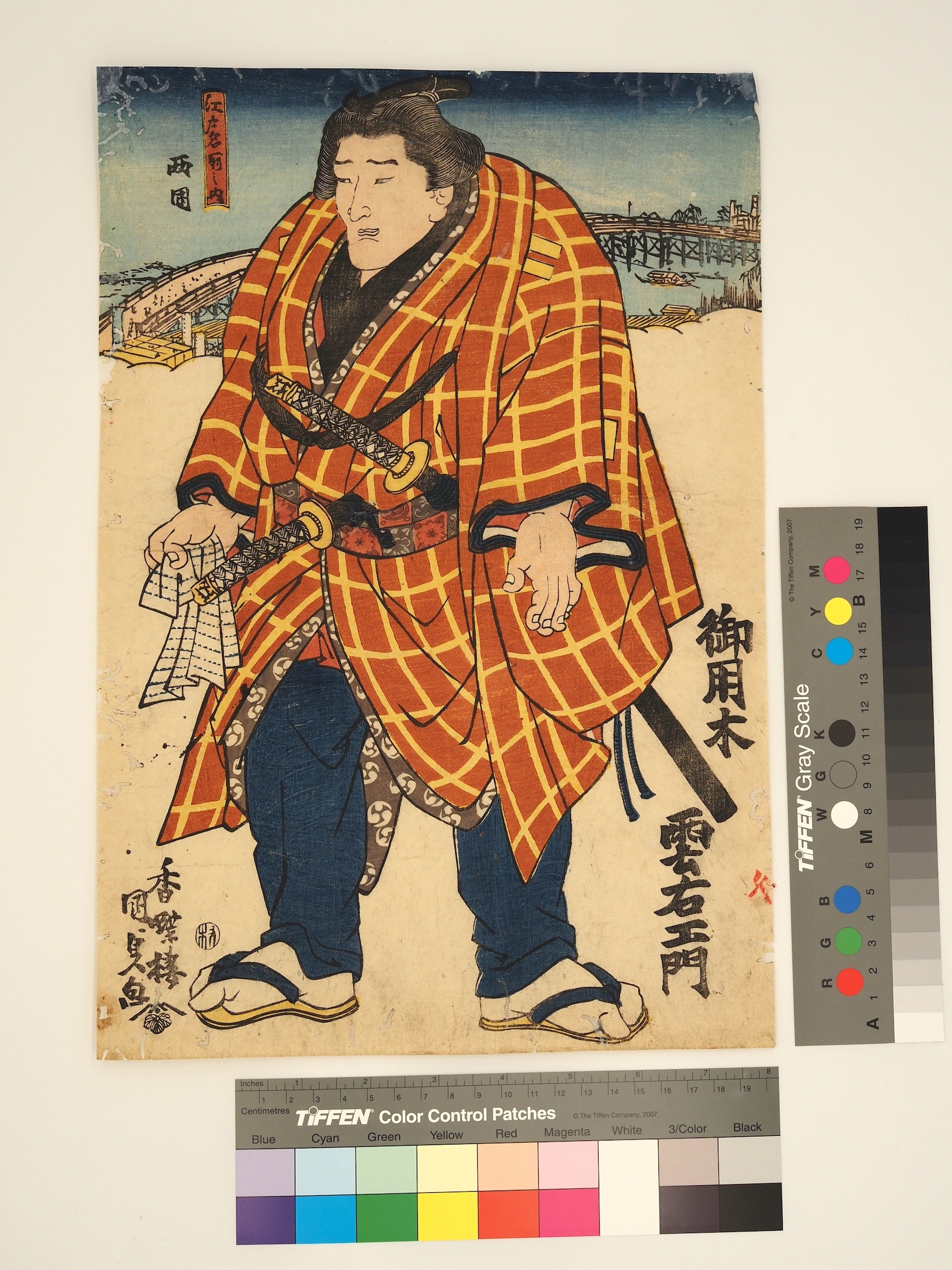 タイトル「御用木雲右衛門(江戸名所ノ内 両国)」 タイトル「御用木雲右衛門(江戸名所ノ内 両国)」 NP-1A-4/歌川 国貞(初代)/豊国(三代)/御用木雲右衛門(江戸名所ノ内 両国)/蔦屋吉蔵/天保15年頃/A/O