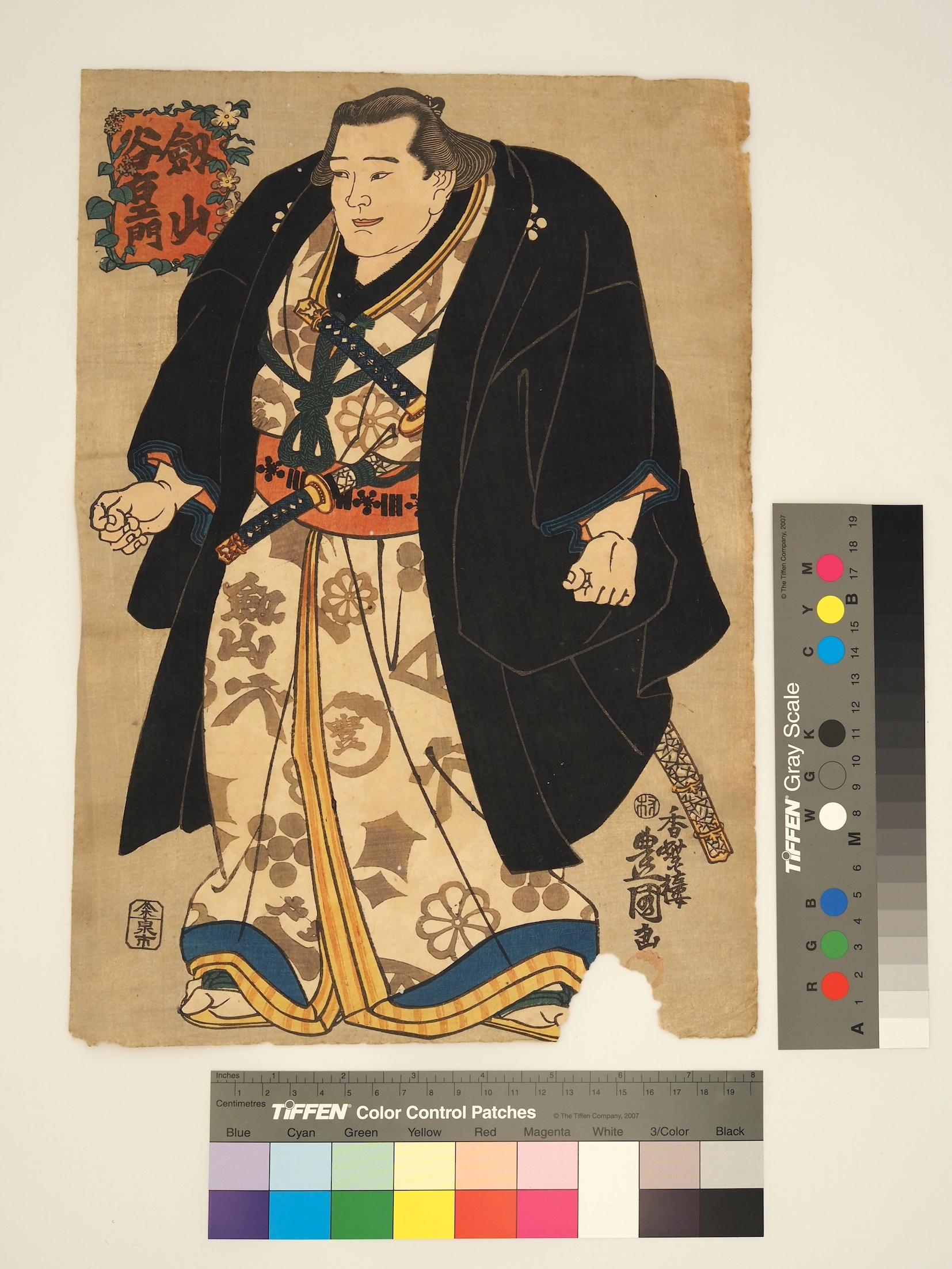 タイトル「剣山谷右衛門(相撲繁栄溜入之圖)」 タイトル「剣山谷右衛門(相撲繁栄溜入之圖)」 NP-1B-4/歌川 国貞(初代)/豊国(三代)/剣山谷右衛門(相撲繁栄溜入之圖)/伊場屋仙三郎/天保15年頃/A/O