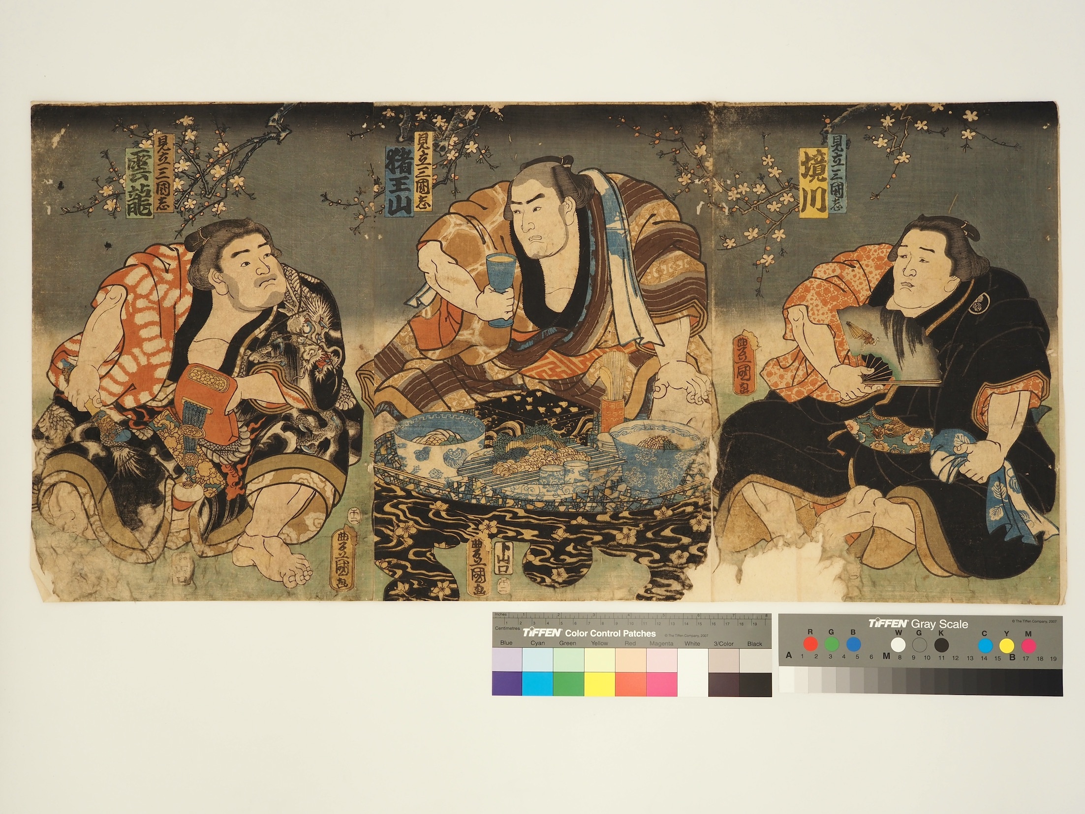 タイトル「見立三國志(境川、猪王山、雲龍)」 タイトル「見立三國志(境川、猪王山、雲龍)」 GSP-8B/歌川 国貞(初代)/豊国(三代)/見立三國志(境川、猪王山、雲龍)/山口屋藤兵衛/安政5年2月/A/O/3枚続