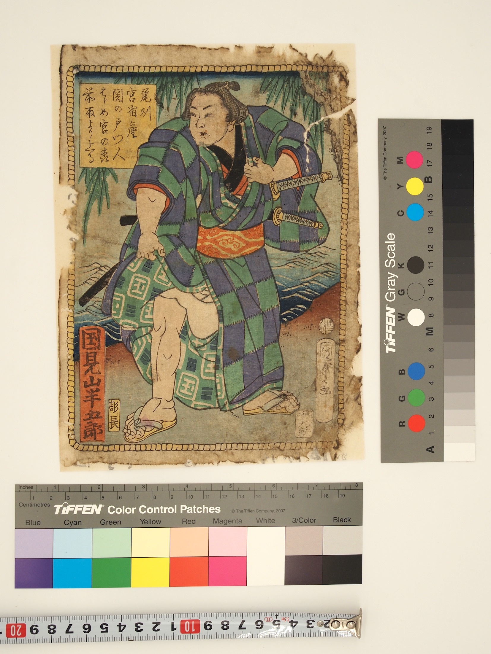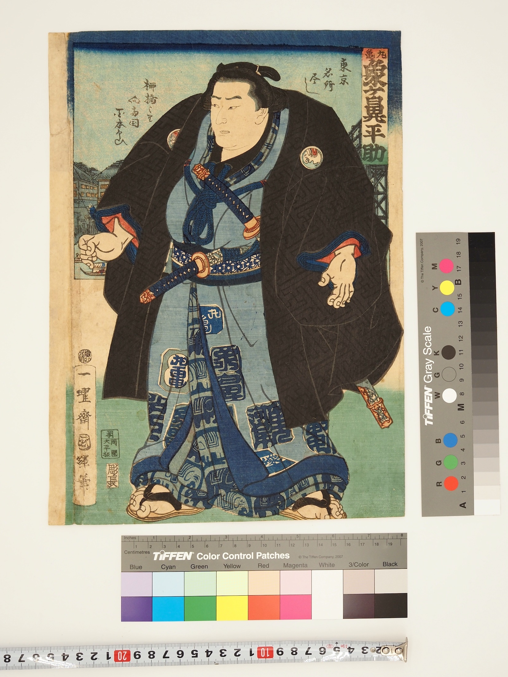 タイトル「象ヶ鼻平助(羽織、東京名所尽)」 タイトル「象ヶ鼻平助(羽織、東京名所尽)」 P8-5B-2 歌川 国輝/象ヶ鼻平助(羽織、東京名所尽)/大黒屋(松木)平吉/明治3年2月/A/O/原版(慶応2年4月の改印)から改版の可能性有
