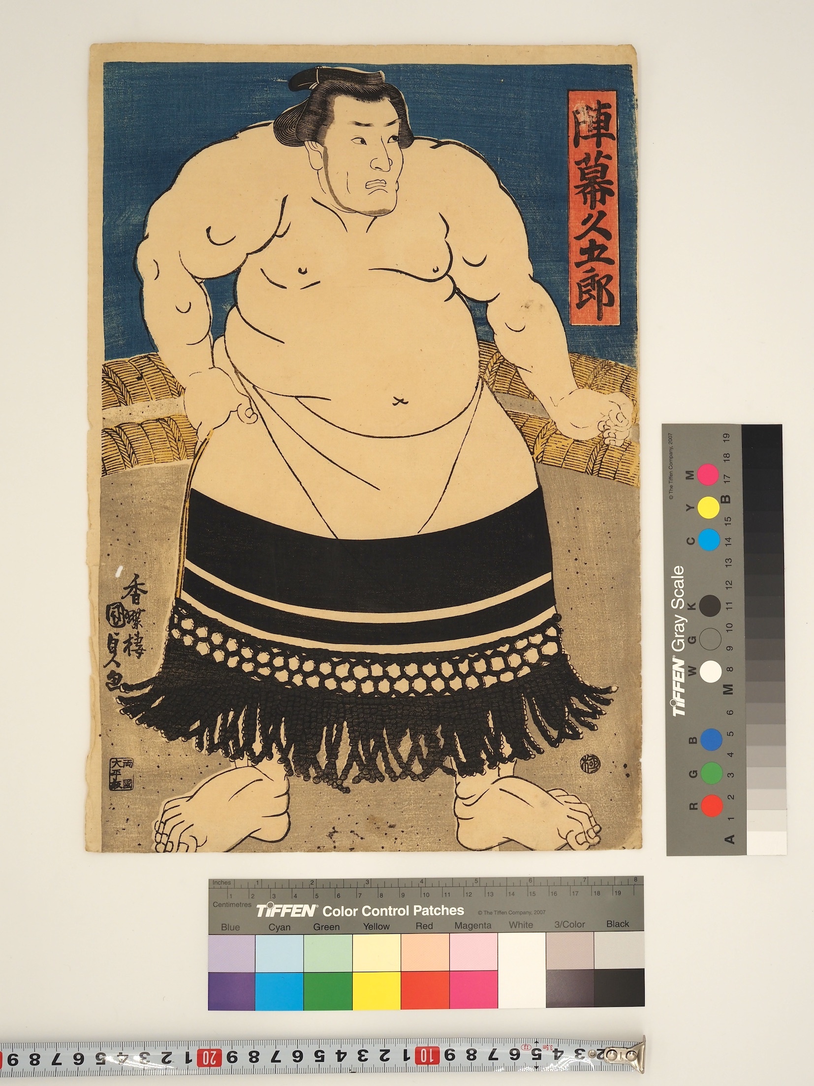 タイトル「陣幕久五郎(阿波徳島藩化粧廻)」 タイトル「陣幕久五郎(阿波徳島藩化粧廻)」 NP-11A-3/歌川 国貞(初代)/豊国(三代)/陣幕久五郎(阿波徳島藩化粧廻)/大黒屋(松木)平吉/安政5年頃/A/O/原版は天保年間の別力士だった可能性有