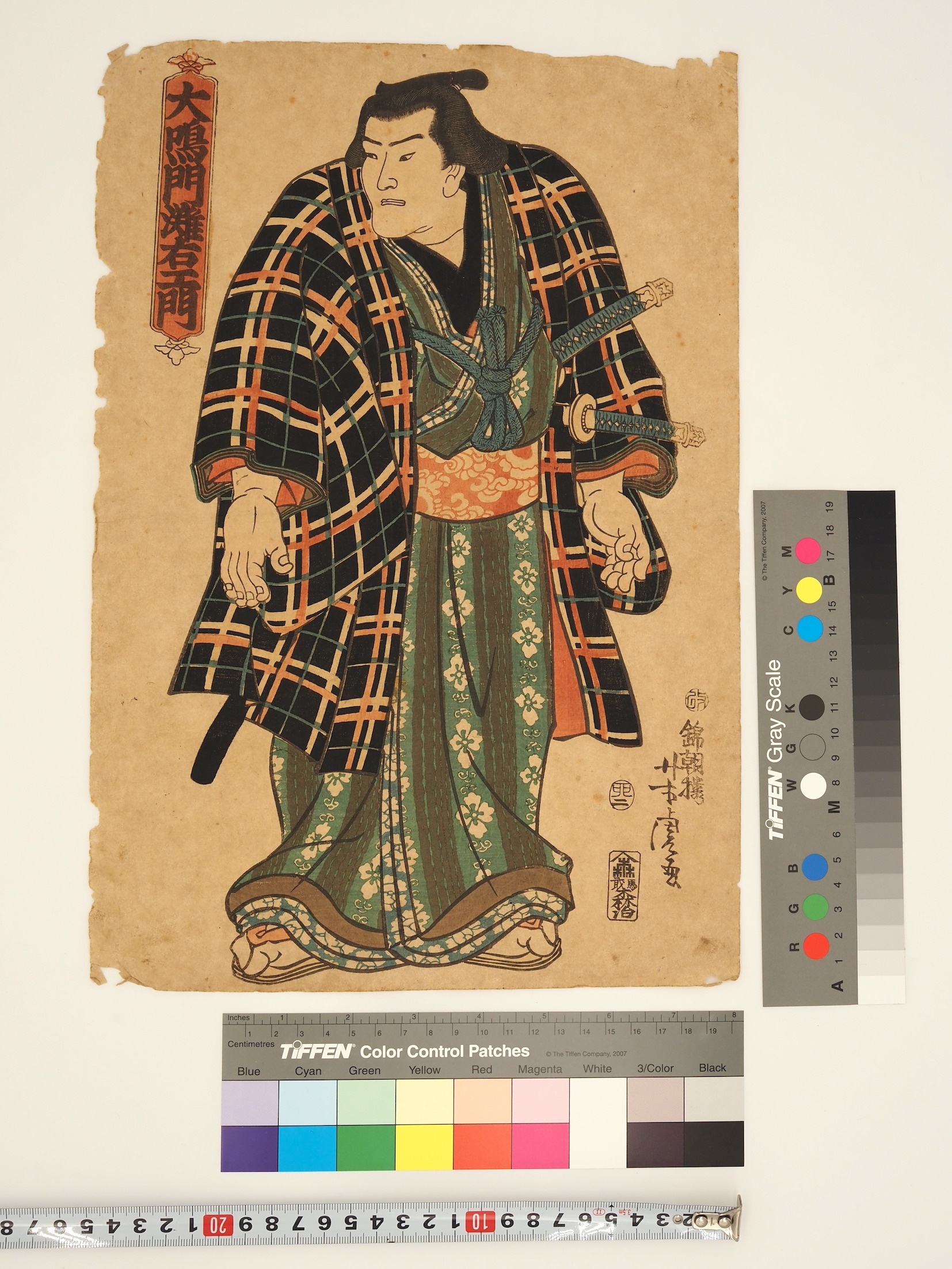 タイトル「大鳴門灘右衛門(羽織)」 タイトル「大鳴門灘右衛門(羽織)」 NP-9C-2/歌川 芳虎/大鳴門灘右衛門(羽織)/森屋治兵衛/安政4年頃/A/O/原版は安政2年2月(前名 大鳴戸松五郎)の可能性有