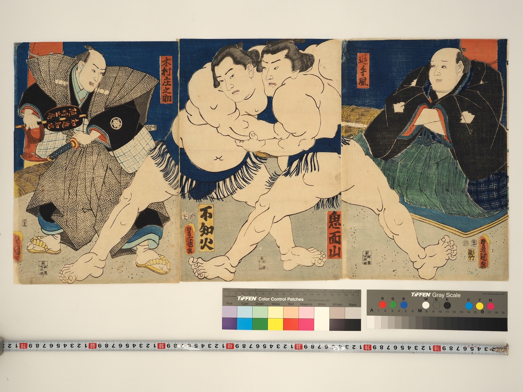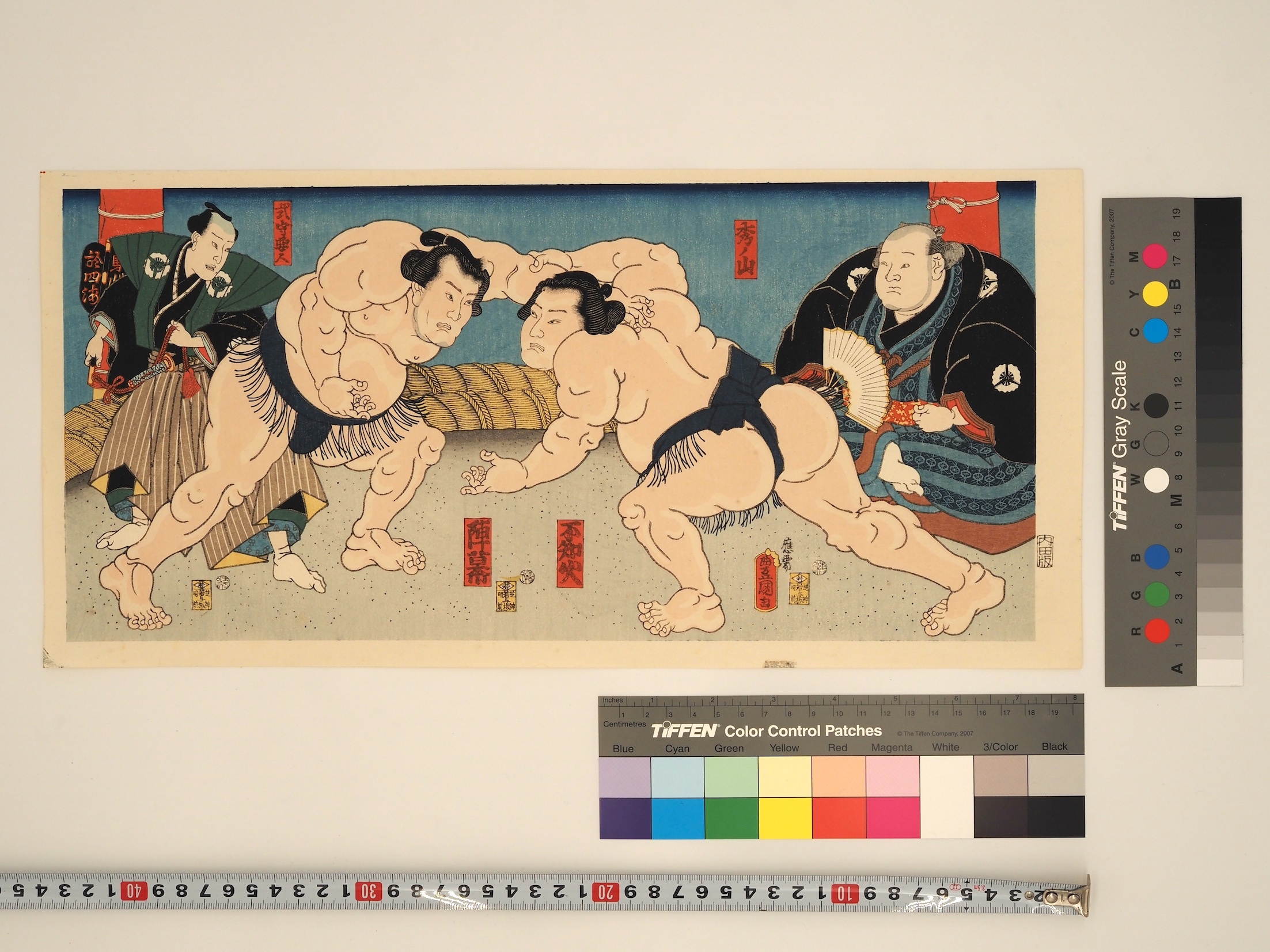 タイトル「(陣幕と不知火の取組図)」 タイトル「(陣幕と不知火の取組図)」 NP-12B-3/歌川 国貞(初代)/豊国(三代)/(陣幕と不知火の取組図)/若狭屋与市/安政6年3月/A/R/復刻中版(内田版)