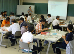 徳島大学FD推進プログラム第4期計画に基づいて、平成23年度FDファシリテーター養成研修が、独立行政法人「国立淡路青少年交流の家」にて開催されました。 今年度もSPOD(※)東四国の加盟校(徳島、香川)にプログラムを開放し、学外から8名参加がありました。今回は阿南工業高等専門学校松本先生を講師にお迎えしてFDプログラム紹介して頂き、徳島大学スタッフと、FDリーダーとしてFD企画の立案・実施に必要な知識やノウハウを学びました。 プログラムでは「FDの課題の把握」「プログラム評価の仕方」等を学び、グループに分かれてFD企画書とプログラムを作成し発表しました。