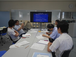 自由討論では、言葉の定義の仕方、説明する順番、例の使い方など、授業の方法だけでなく専門的な内容について同僚の教員と議論を行い、参加者間でより具体的な授業設計の共有を行うことができました。