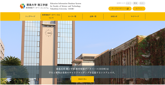 徳島大学理工学部は、次世代ひかりトクシマ事業の一環で、理工系学生と地域企業とのキャリアマッチングを支援するシステム「教育情報データベースシステム(EIDB)」の運用を開始しました。