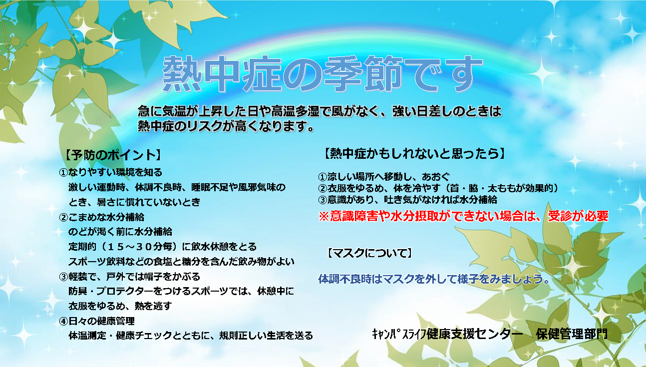 熱中症対策について掲載しますので、内容を確認してください。