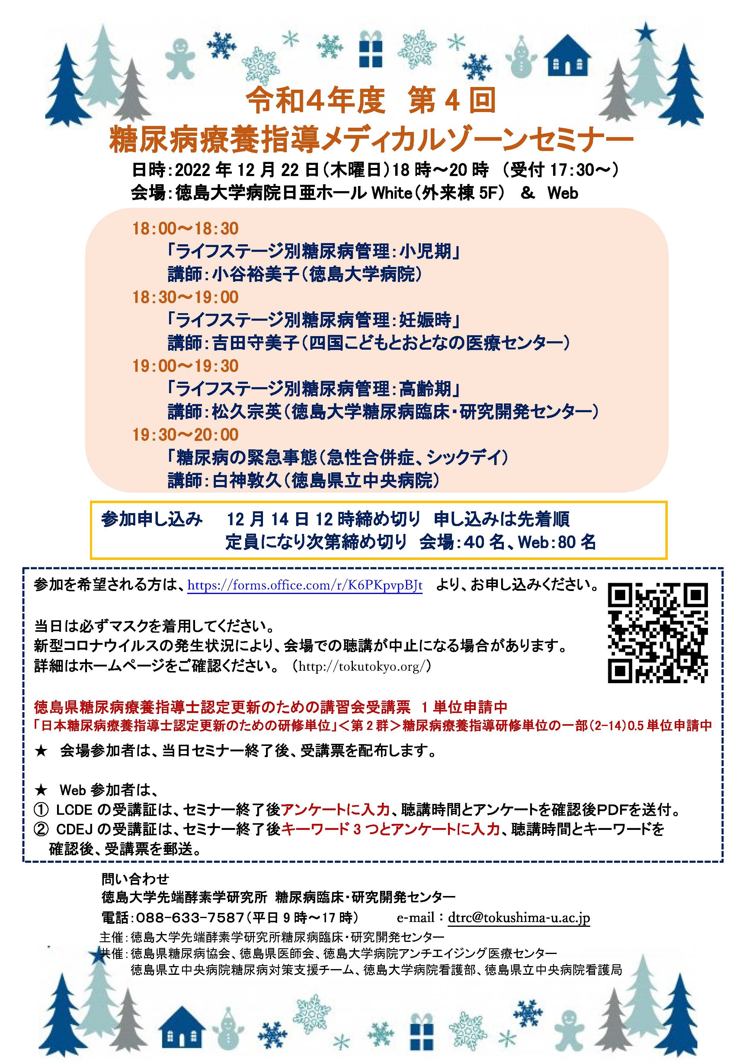 『令和4年度 第4回糖尿病療養指導メディカルゾーンセミナー』