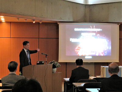 ![]() 日立造船株式会社 機械事業本部 システム機械ビジネス ユニット 設計部 國塩 和良氏による講演の様子 |