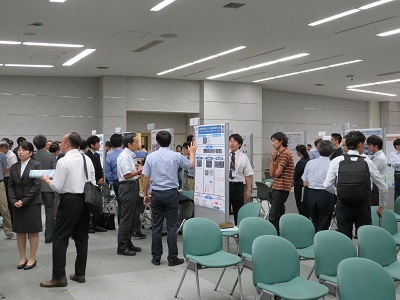 今回も外部評価委員をお迎えし、大学院社会産業理工学研究部の研究成果を紹介するとともに、大学院博士後期課程学生の研究発表、先端工学教育研究プロジェクトの成果報告、日亜化学工業教育研究助成基金や阿波銀行学術・文化振興財団研究助成採択者の研究発表、各センター等の紹介、さらに学外からは香川大学創造工学部からと計47件の出展があり、学内外から約220人の方にご来場いただきました。