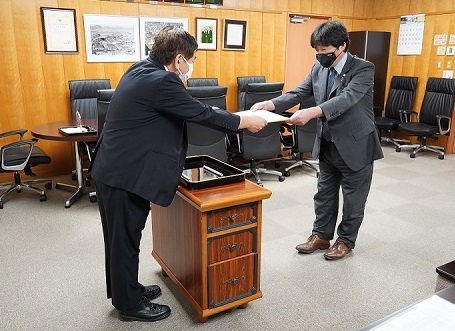 本来であれば,中国・四国工学教育協会総会の席上で表彰を行うこととなっておりますが,コロナ禍により実施されないため,本日10月7日に,協会理事を務める山中理工学部長より,表彰状及び記念品が授与されました。